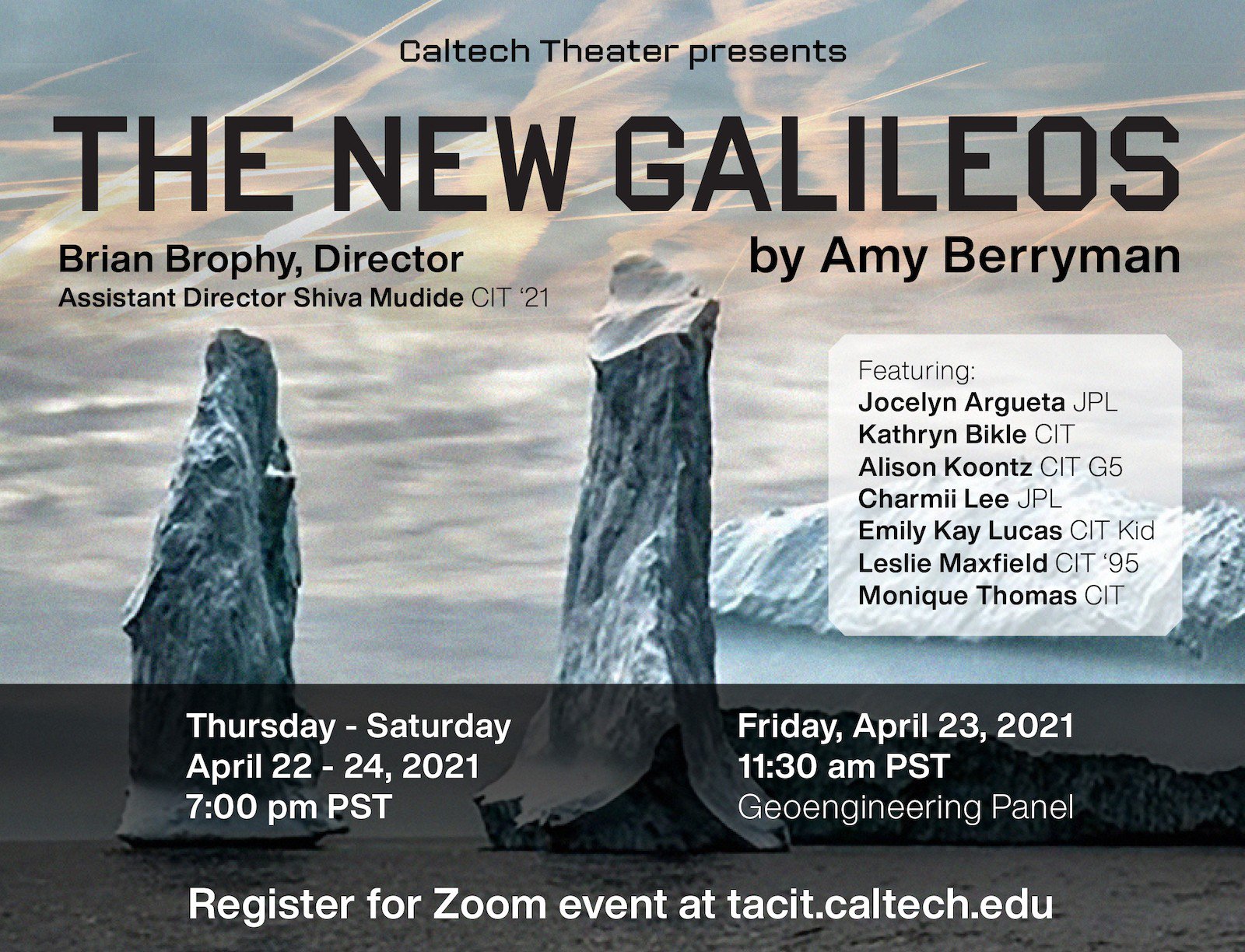 RELATED EVENT: On Friday, April 23, from 11:30 a.m. to 1:00 p.m. PST, Caltech Sustainability and TACIT present an Earth Week Panel on Geoengineering. The panel includes Caltech researchers and Amy Berryman, the playwright of The New Galileos. Learn more.