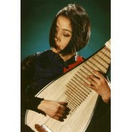 The pipa is a lute-like instrument with a history of more than two thousand years. During the Qin and Han Dynasties (221 B.C. - 220 A.D.), instruments with long, straight-necks and round resonators with snake skin or wooden sound boards were played with a forward and backward plucking motion that sounded like "pi" and "pa" to fanciful ears. Hence, all plucked instruments in ancient times were called "pipa". During the Tang dynasty, by way of India, the introduction of a crooked neck lute with a pear-shaped bellu contributed to the pipa's evolution. Today's instrument consists of twenty-six frets and six ledges arranged as stops and its four strings are tuned respectively to A,D,E,A. The pipa's many left and right hand fingering techniques, rich tonal qualities and resonant timber give its music expressiveness and beauty that are lasting and endearing.- Noted by Wu Man
